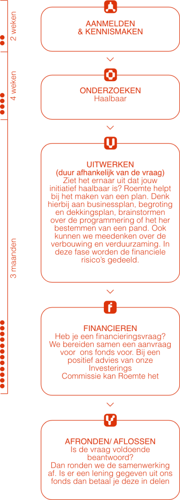 Nee, je hoeft geen advies of projectbegeleiding af te nemen om een lening te kunnen krijgen. Wel komt het regelmatig voor dat het plan dat voorligt nog niet financierbaar is omdat er nog informatie ontbreekt. Roemte kan dan met behulp van adviseurs uit ons netwerk en onze eigen expertise zorgen dat het plan wel financierbaar wordt. Ook kunnen wij kosten voorschieten in de planvormings-fase, zoals een taxatie, onderzoeken of bouwkundige tekeningen.